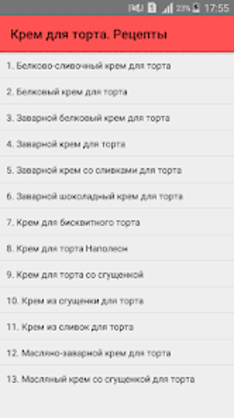 Крем для торта. Рецепты ต้องการ Android 13.0 หรือสูงกว่า เวอร์ชันปัจจุบันของซอฟต์แวร์คือ 1.0 และคุณสามารถเรียกใช้ได้เฉพาะภาษารัสเซียเท่านั้น
